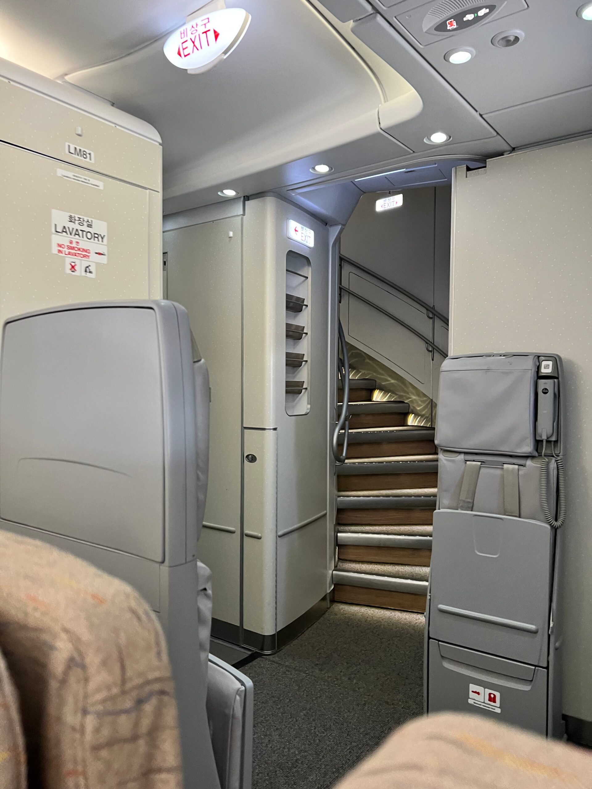 大昔に乗ったボーイング747以来、久しぶりに飛行機内で階段をみました。