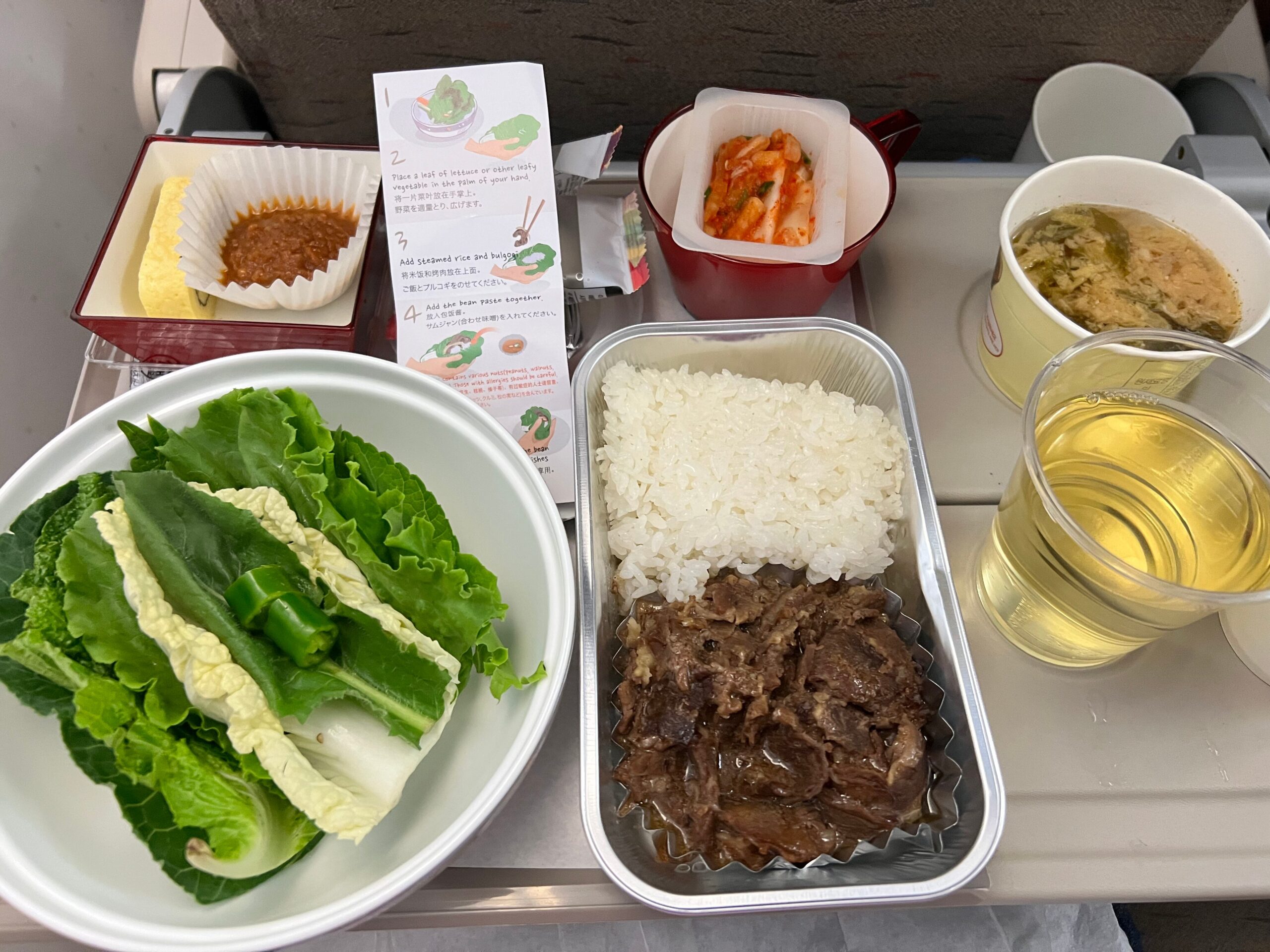 往復で6食+(軽食2回)いただきましたが、毎回コリアンフードを指定。