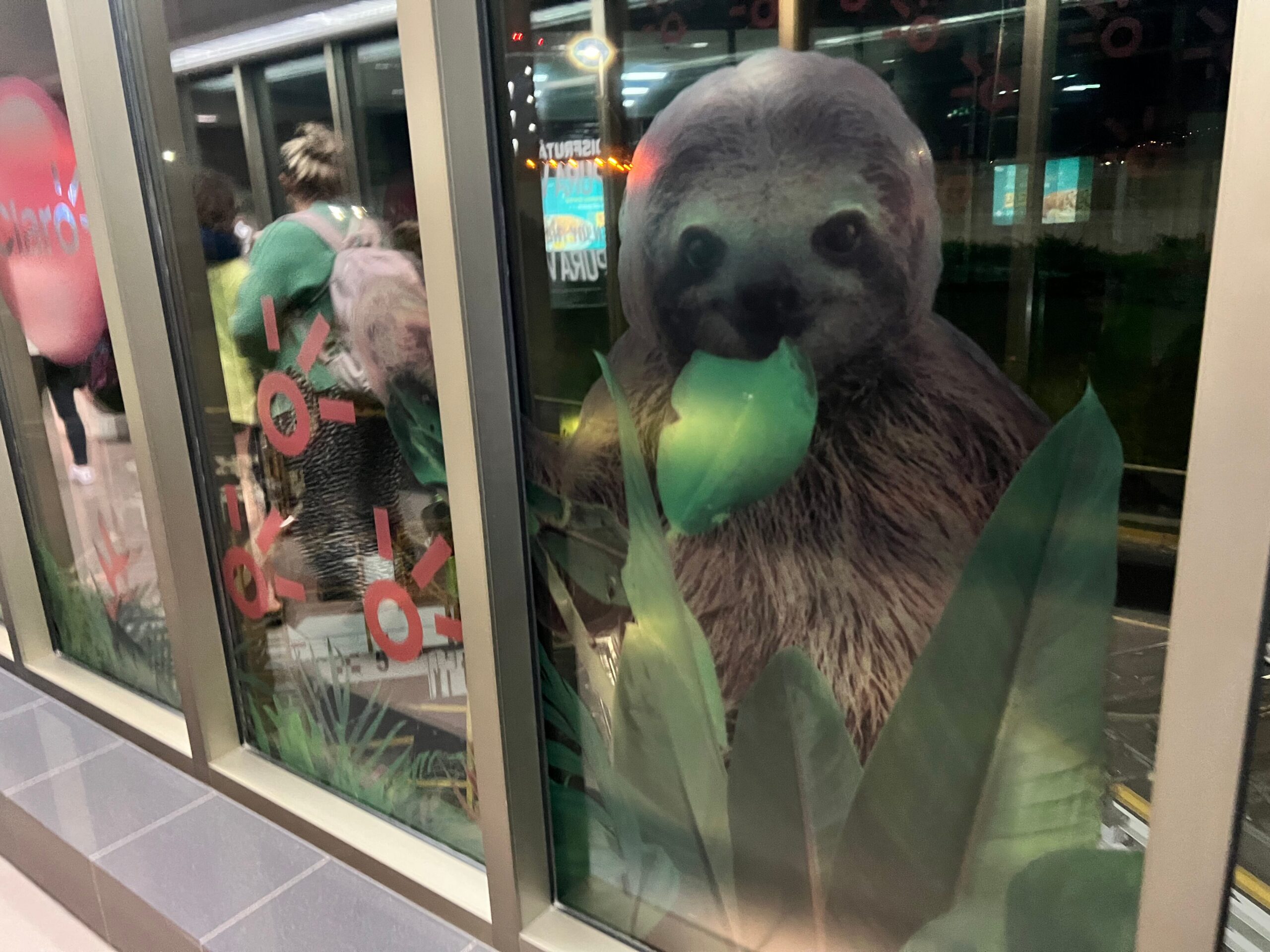 ボーディングブリッジから早速けもさんがお出迎えしてくれます🦥