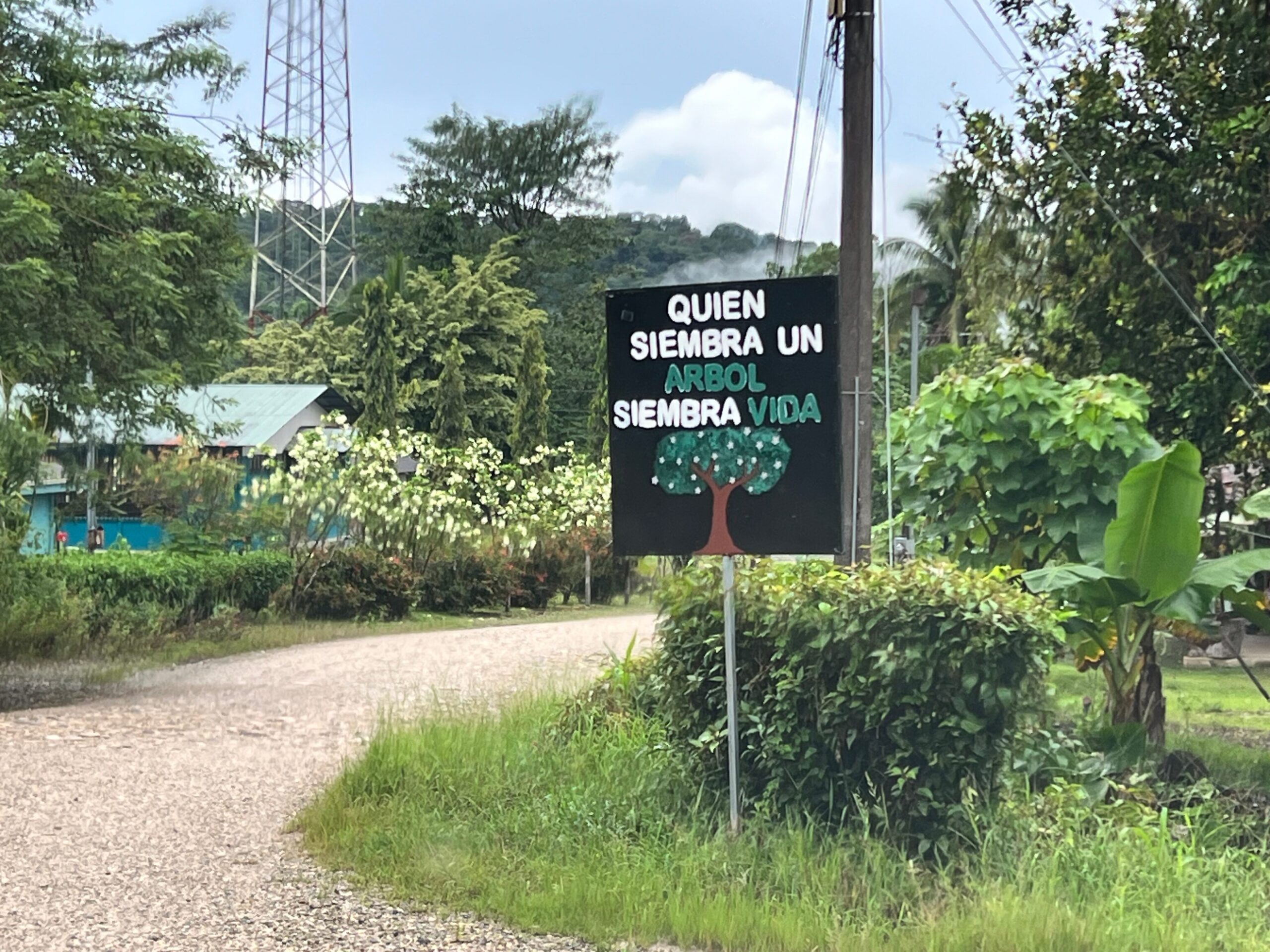 休憩を挟みつつ、約6時間半のドライブを経て、夕刻にようやく目的地であるラ・グアリアに到着。「木を植える人は命を植える人」という看板が迎えてくれます。