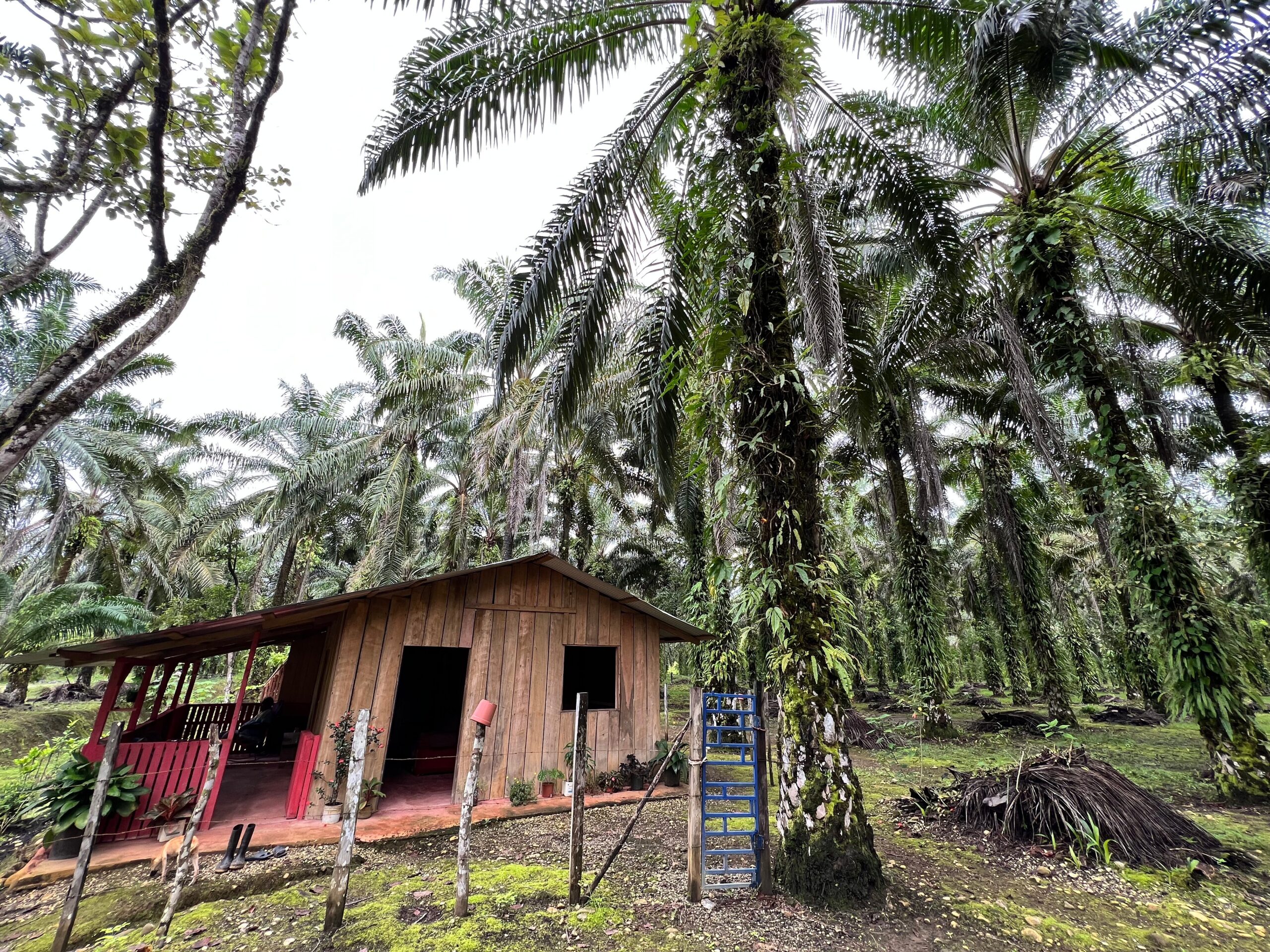 バイクに乗せてもらい、橋を渡って、ラ・グアリアの主要産業となっているアフリカンパームのプランテーションを案内していただきました。