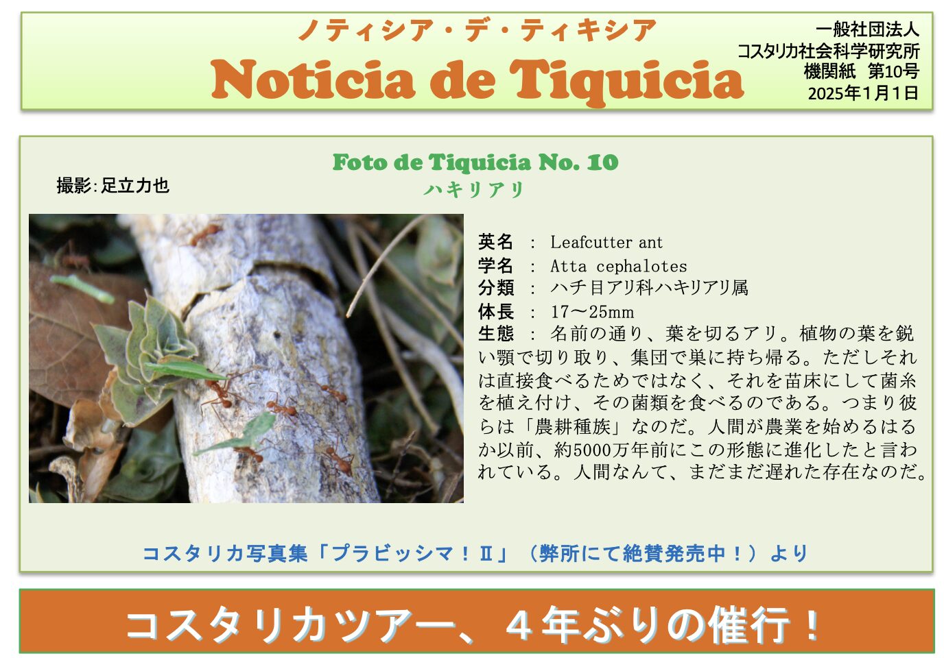 弊所機関紙 "Noticia de Tiquicia" 第10号を発行いたしました。