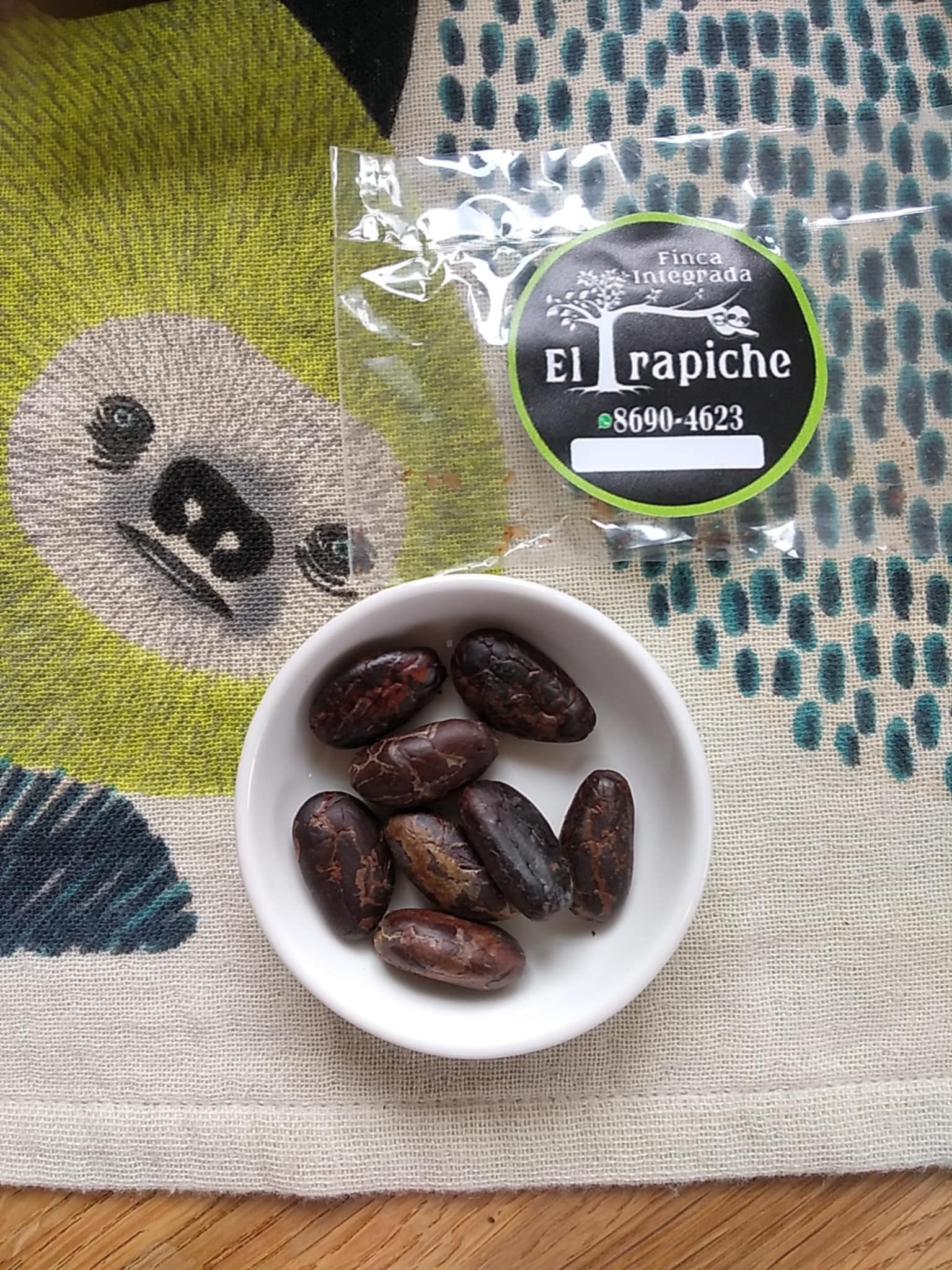 今回は予告通り、「なまけものの通りみち」を展開するトラピチェ統合農園で収穫し、焙煎したカカオ豆の試食と、代表理事・足立の帰国報告会を行いました。